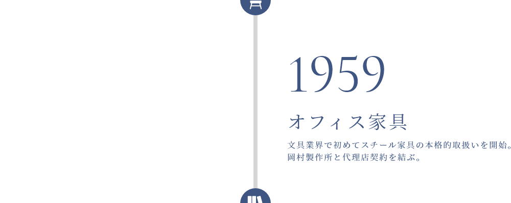 文具業界で初めてスチール家具の本格的取り扱い開始し、オカムラと代理店契約を結ぶ