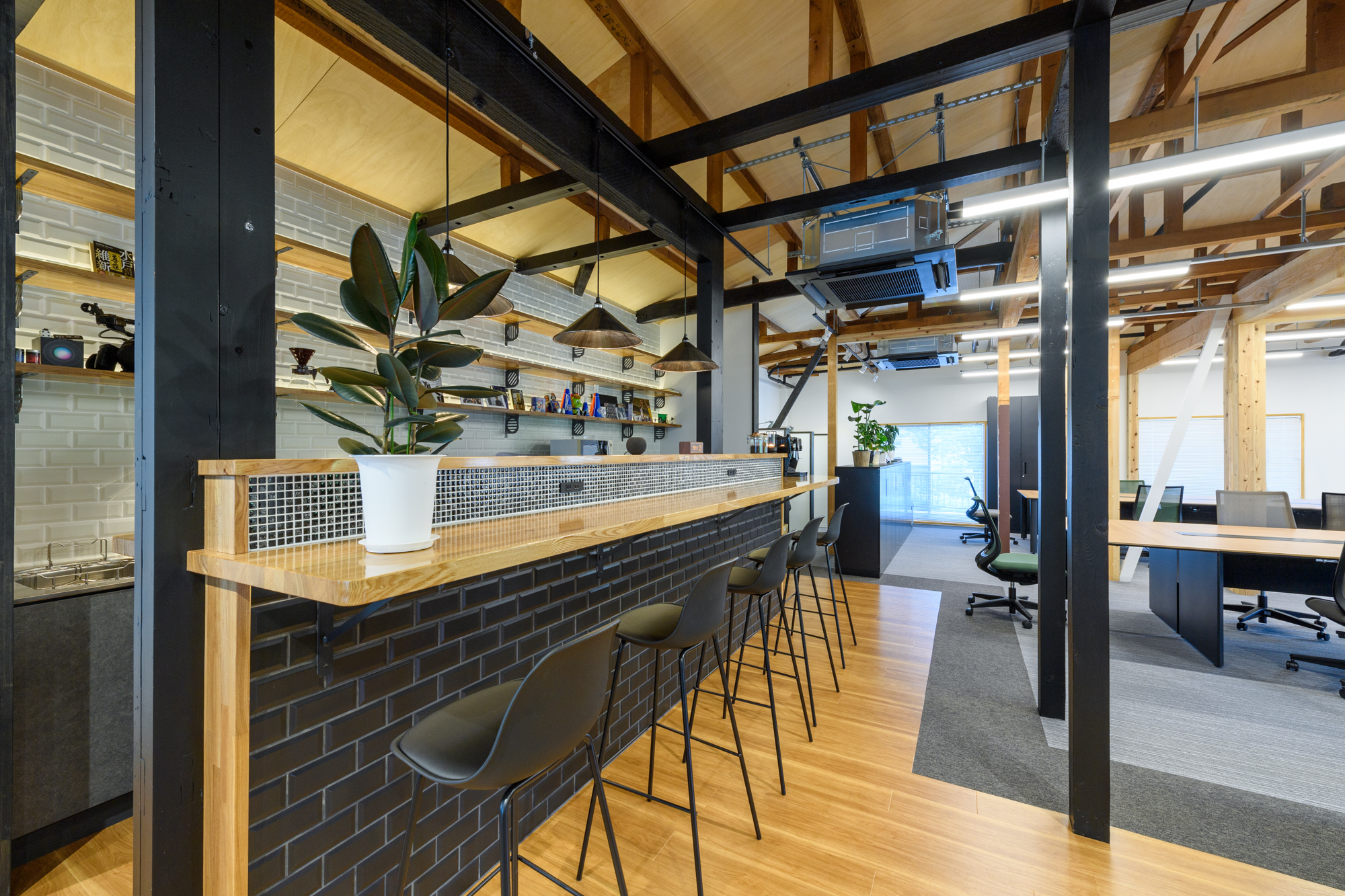 元は工務店の作業所兼住宅として使用されていた戸建物件をリノベーション、1階部分は広々としたスタジオに、住居だった2階部分は木造の木組みを生かした秘密基地のようなオフィスに生まれ変わりました。