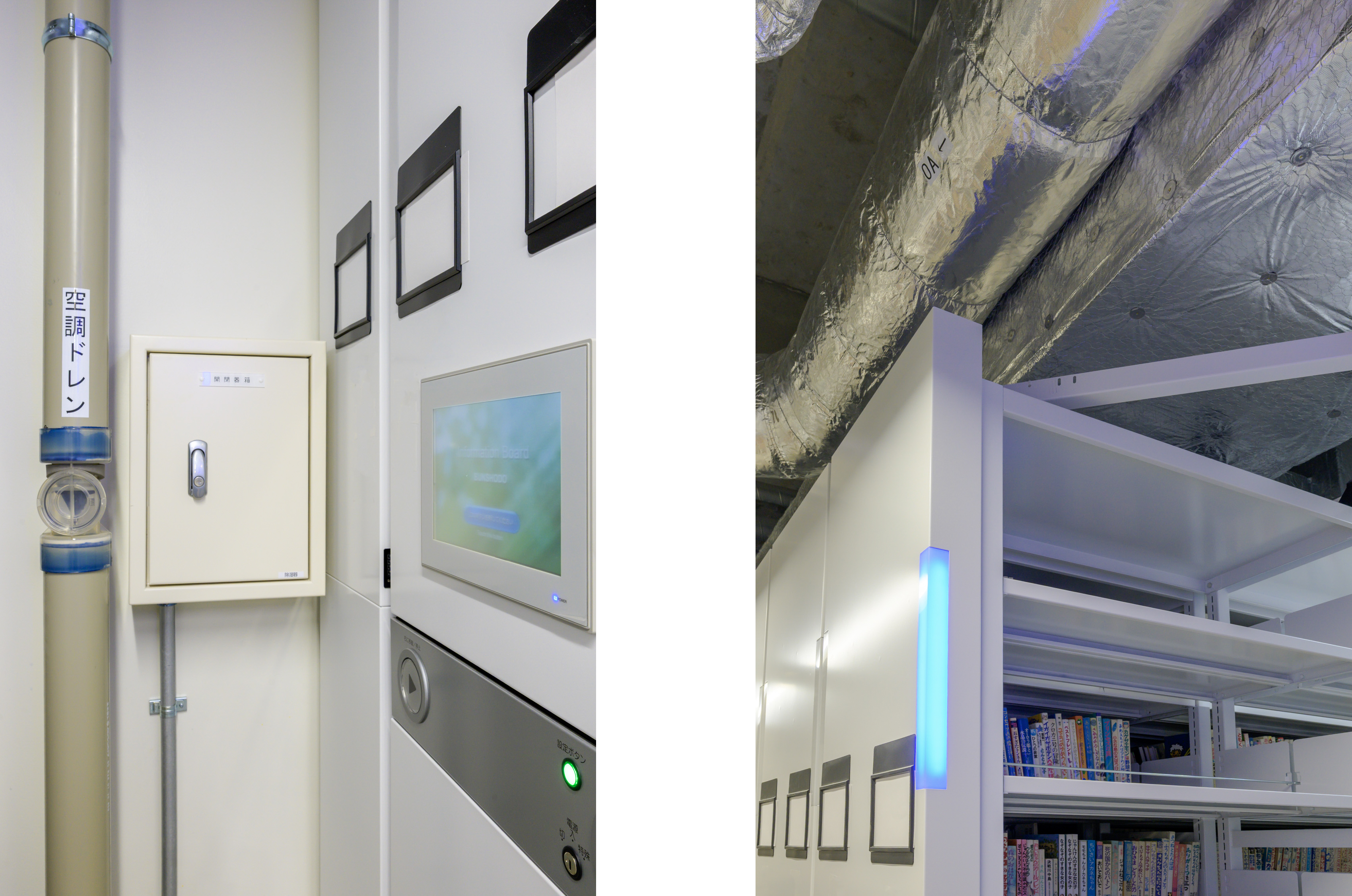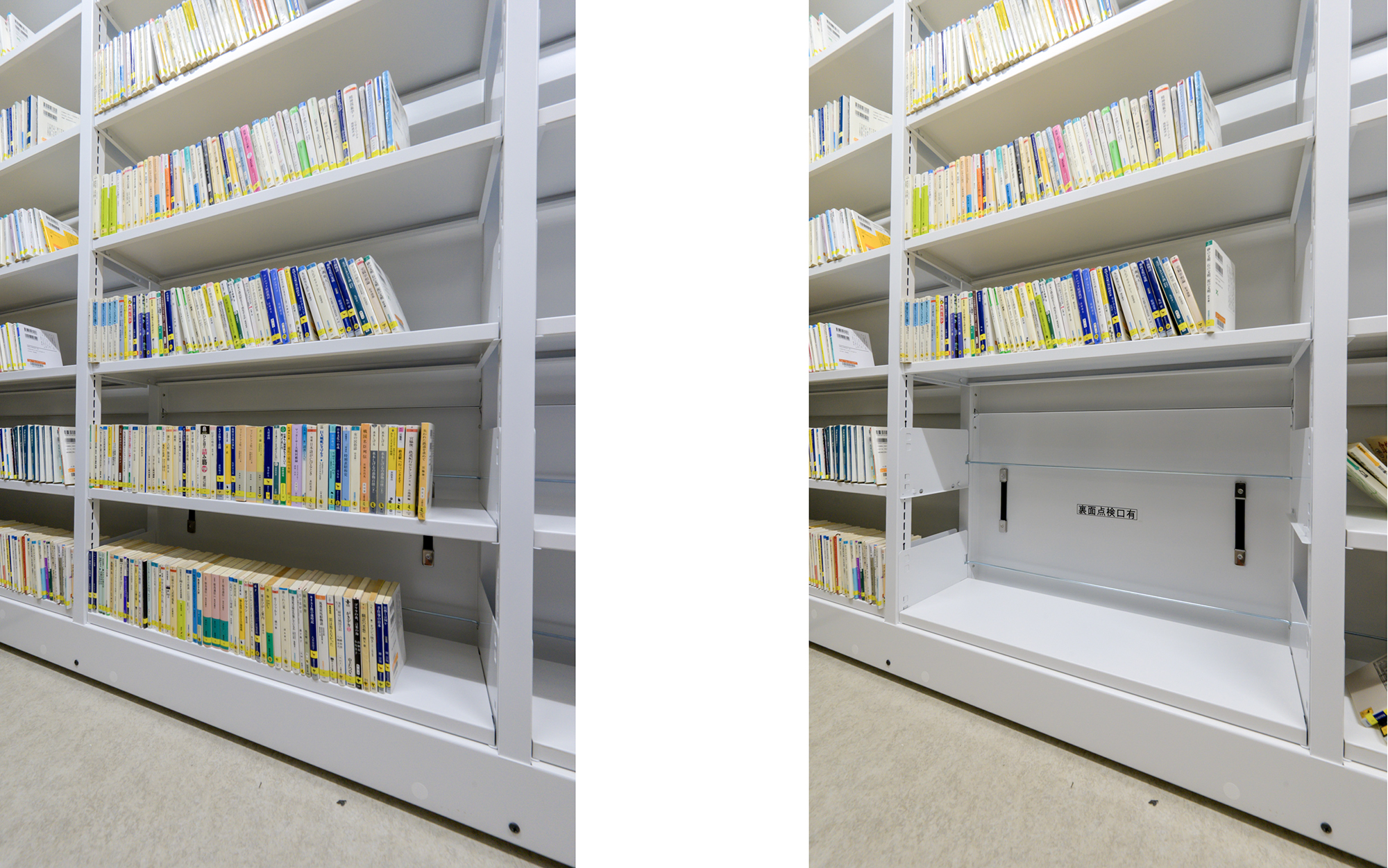 設置面積 | 閉架書庫1 約47㎡(移動棚・固定棚) / 閉架書庫2 約49㎡(移動棚・固定棚) |