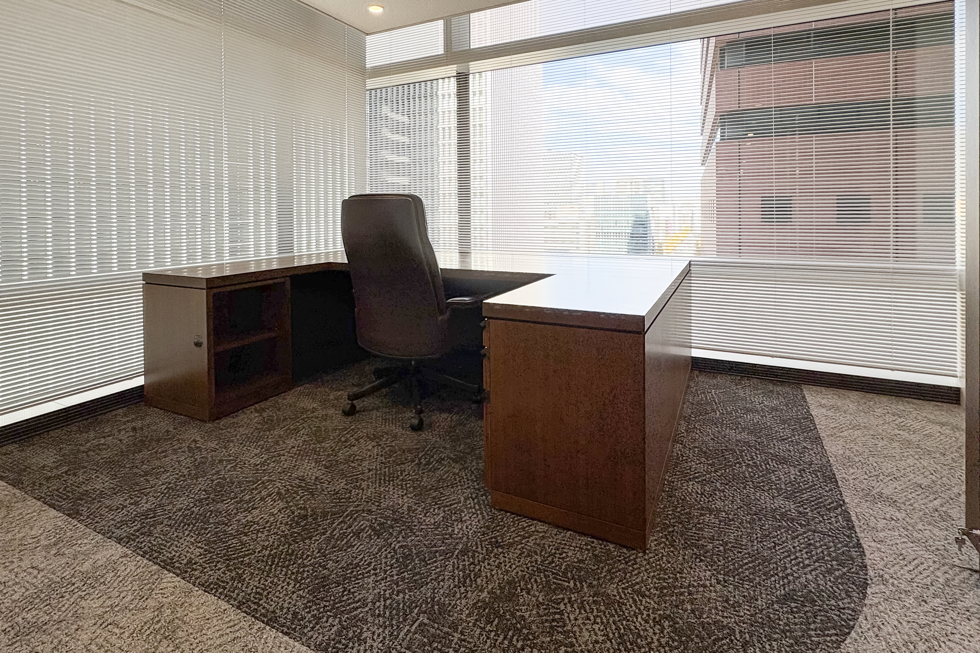 渡辺氏が晩年まで使用した執務机を、大手町を見晴らす窓際に設置